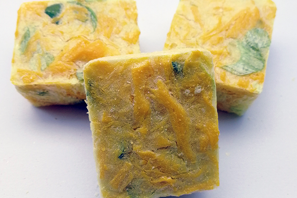 FD蛋湯塊:以雞蛋為原料,經過真空冷凍干燥加工而成。水分在5%以下,尺寸在38×32×15mm等。色澤淡黃色。真空冷凍干燥蛋湯結構緊密,復水后的蛋花條片狀,基本均勻一致,具有新鮮雞蛋湯固有的口感特征,可用于方便食品的佐餐湯料,該產品用95℃以上的清水浸泡60秒鐘即可復原,復原后的產品口感細膩、滑嫩、鮮蛋湯味道突出。