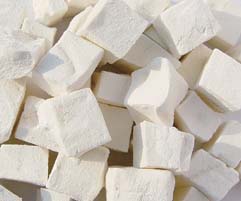 FD豆腐是以大豆為原料加工而成,水分在5%以下,尺寸在15×12×8mm、12×12×12mm、12×12×6mm不等,色澤淺黃色或白色。真空冷凍干燥豆腐結(jié)構(gòu)緊密,但不失鮮嫩豆腐固有的口感特征,可干食或加工成佐餐湯料后食用,該產(chǎn)品用95℃以上的清水浸泡30秒鐘即可復(fù)原,復(fù)原后的產(chǎn)品口感細(xì)膩、潤滑、鮮豆乳味道突出。
